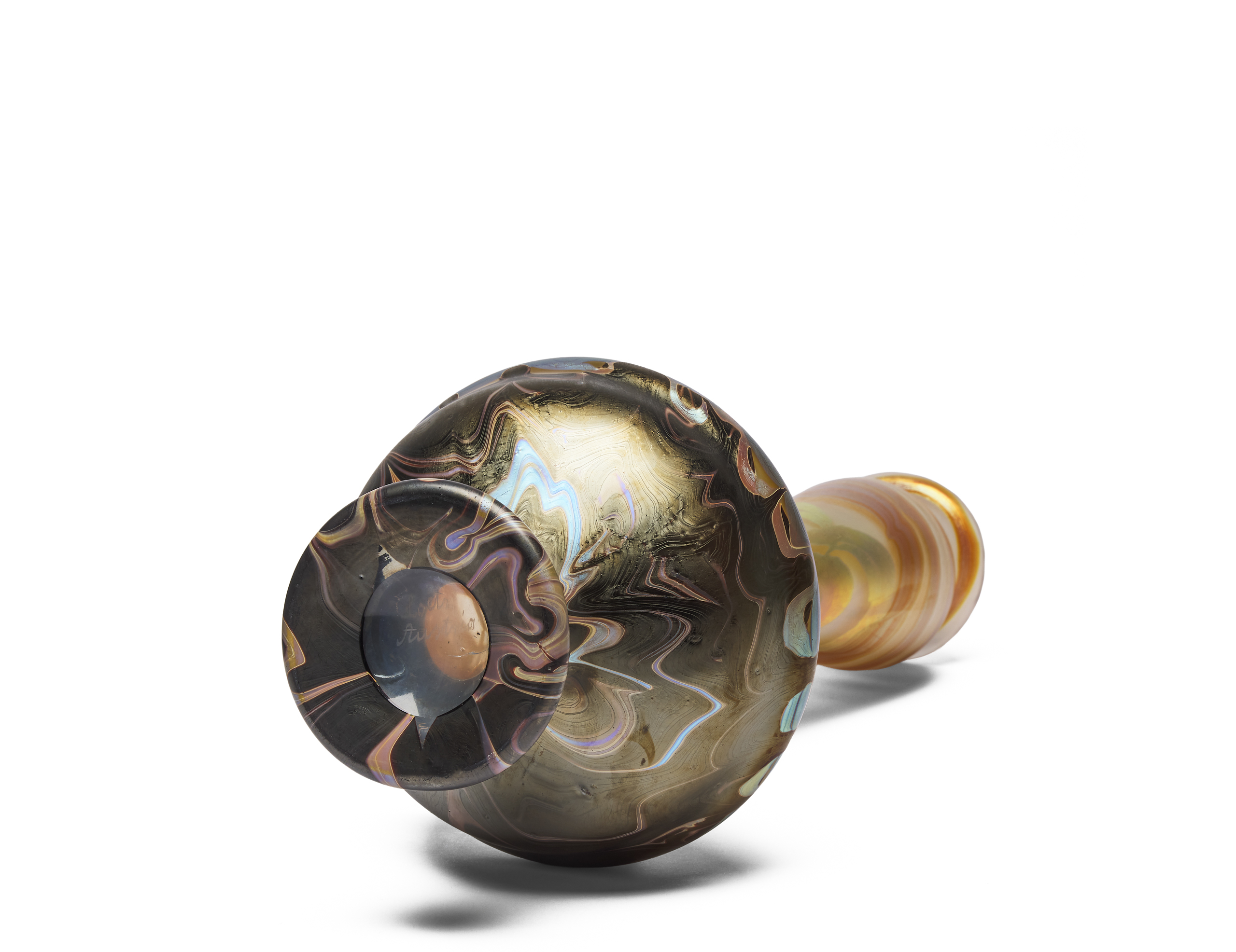 Een museumwaardig meesterwerk van uitzonderlijke zeldzaamheid, speciaal vervaardigd voor de Wereldtentoonstelling van Parijs in 1900 en behorend tot de belangrijkste bewaard gebleven voorbeelden van het tentoonstellingswerk van Franz Hofstötter voor Loetz.