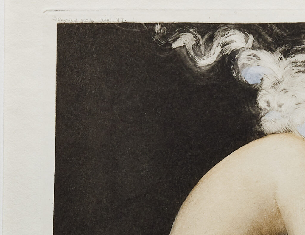 Illusions belongs to the characteristic female figure compositions through which Louis Icart reached an international audience and represents a highly representative example of the luxurious, refined and exceptionally elegant character of Parisian Art Deco printmaking of the interwar period.