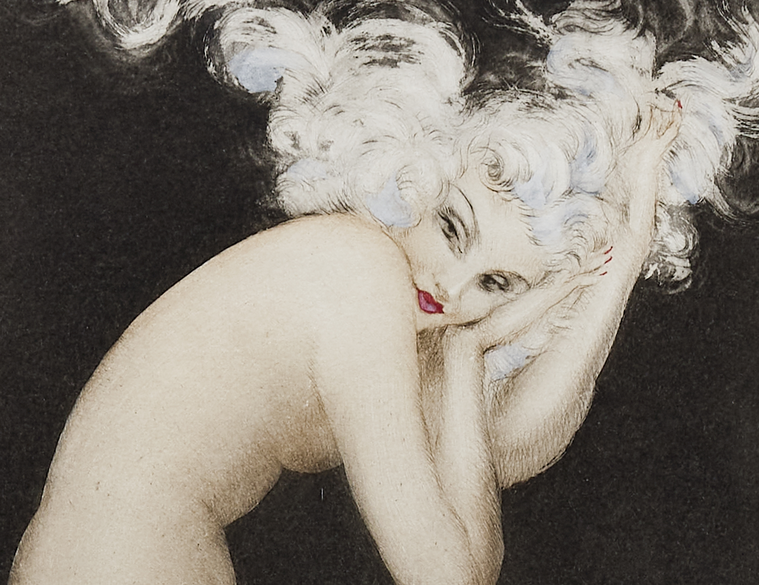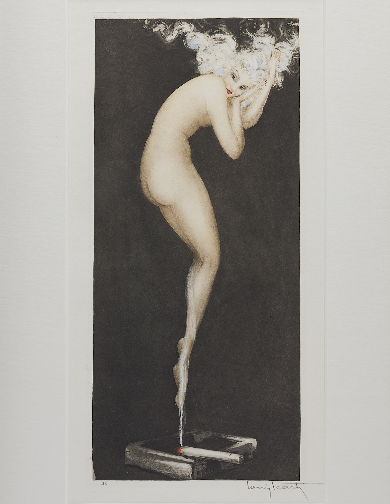 Illusions belongs to the characteristic female figure compositions through which Louis Icart reached an international audience and represents a highly representative example of the luxurious, refined and exceptionally elegant character of Parisian Art Deco printmaking of the interwar period.